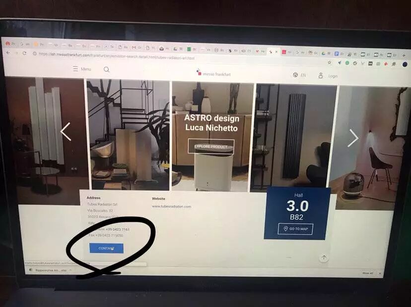 大家可以很明显的看到,点到一个参展商的Sub网页里面,很清楚的就可以找到 Kontakt。